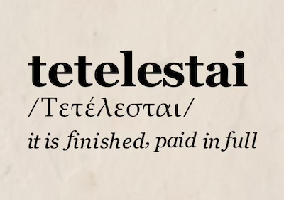 We, the hell-deserving, have heaven-deserving righteousness placed on us like a thermal blanket on a hyperthermia victim. This is no stray holdover of Protestant dogma. This is the biblical motif from Genesis to Revelation. It’s what gives our Christian lives verve and assurance. It’s what clarifies our calling as disciples of God. As we go and preach and make other disciples in Jesus’s name, we do so knowing that the work that releases them from judgment has been finished. Their sins have been imputed to Another. It’s done. There is nothing more to do. Τετέλεσται.